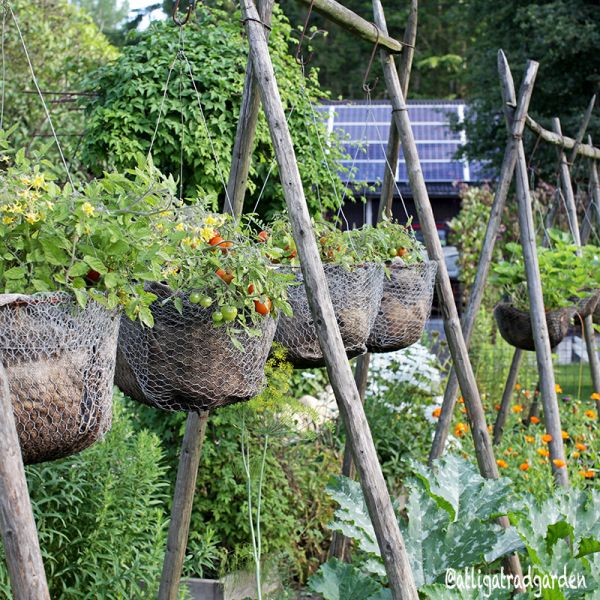 Att utnyttja höjden är ett bra tips när man har begränsad yta att odla på. Själv har jag hela jordgubbsodlingen och en del tomater hängandes i 12 amplar över trädgårdslandet, även en björnbärsbuske...