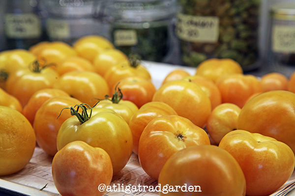 De gula är mina Ponderosa och de röda är köpta, en ganska stor pastatomat, en liten körsbärstomat och en normalstor.